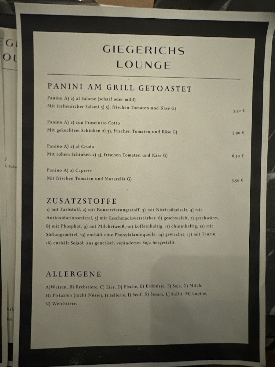 Cafe Wein Lounge Giegerich (by Longo) Menu